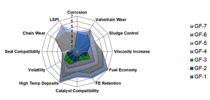 GF-7的主要變化是對程序VIE燃油經(jīng)濟性和程序IIIH氧化和沉積控制方面的性能要求更嚴格。這些變化旨在幫助汽車制造商應對未來EPA排放目標的挑戰(zhàn),并確保發(fā)動機因粘度或摩擦而導致的能量損失最小。同時,新設計的發(fā)動機能夠以更高的燃燒效率運行,并增加機油的耐熱性。