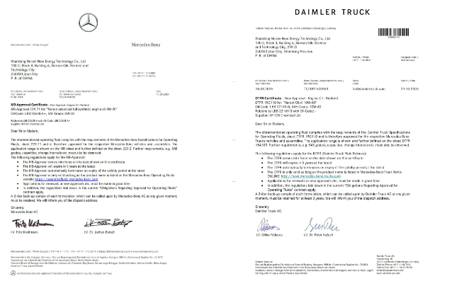 卓越品質(zhì),需經(jīng)權(quán)威檢驗。耐潤潤滑油通過歐洲汽車制造商協(xié)會ACEA、國際潤滑油標準及認證委員會ILSAC等多項國際權(quán)威認證,更斬獲德國奔馳原廠MB229.71/MB229.51認證、戴姆勒奔馳重卡15C110認證、IATF16949質(zhì)量管理體系認證、ISO9001質(zhì)量管理體系認證、ISO14001環(huán)境管理體系認證。每一項認證與榮譽,都是對耐潤產(chǎn)品品質(zhì)的高度認可,讓消費者使用更安心。